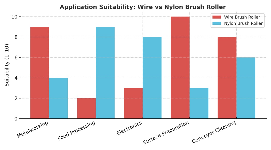4. Aplicaciones industriales: rodillo de cepillo de alambre vs. de nailon